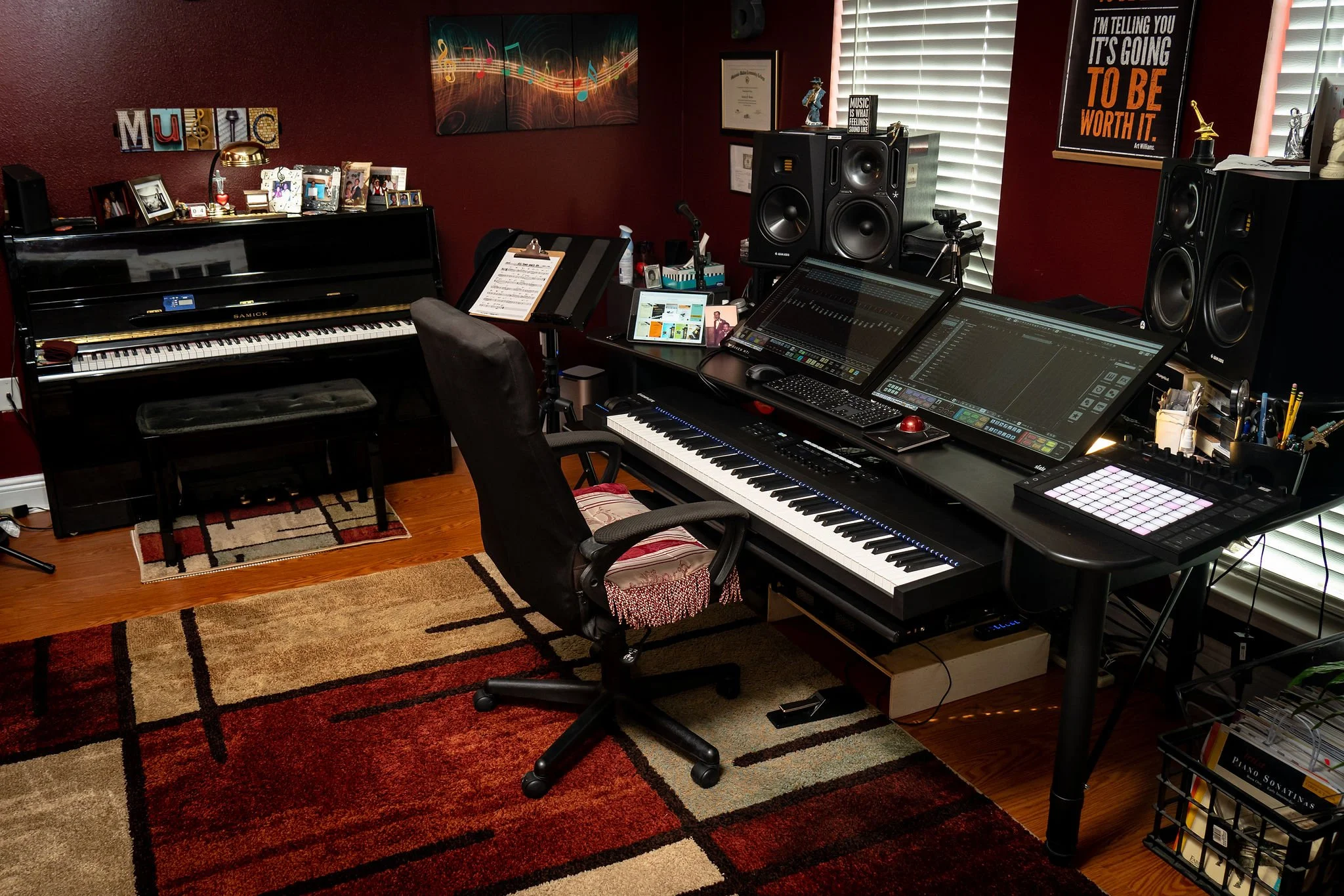 Using the latest State of the Art DAW’s (Digital Audio Workstations)and realistic orchestral sounds and instrumental sample libraries such as Cubase, Ableton Live, Bandlab Cakewalk, Kontakt Player and Library to name a few. See a complete Hardware and Software list on the equipment page.